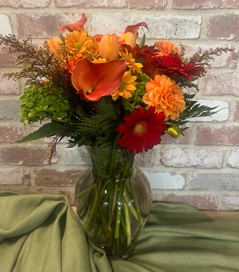 Ceramic Pumpkin with Fresh Seasonal Flowers